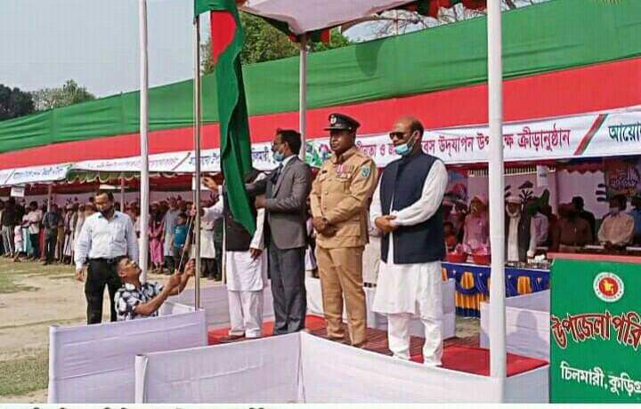 এ সময় উপজেলা নির্বাহী অফিসার মোঃ মাহবুবুর রহমান, চিলমারী মডেল থানার তদন্ত ওসি প্রাণ কৃষ্ণ, উপজেলা ভাইস চেয়ারম্যান নুরুজ্জামান আজাদ জামান উপস্থিত ছিলেন। পরে মার্চপাষ্ট, কুচকা আওয়াজ ডিসপ্লে এবং উক্ত মাঠে বীর মুক্তিযোদ্ধা, যুদ্ধাহত মুক্তিযোদ্ধা ও শহীদ মুক্তিযোদ্ধা পরিবারের সদস্যগনকে সংবর্ধনা দেয়া হয়ছে। সংবর্ধনা শেষে ক্রীড়া অনুষ্ঠান এবং সন্ধায় আলোচনা সভা ও সাংস্কৃতিক অনুষ্ঠানের আয়োজন করা হয়ছে।