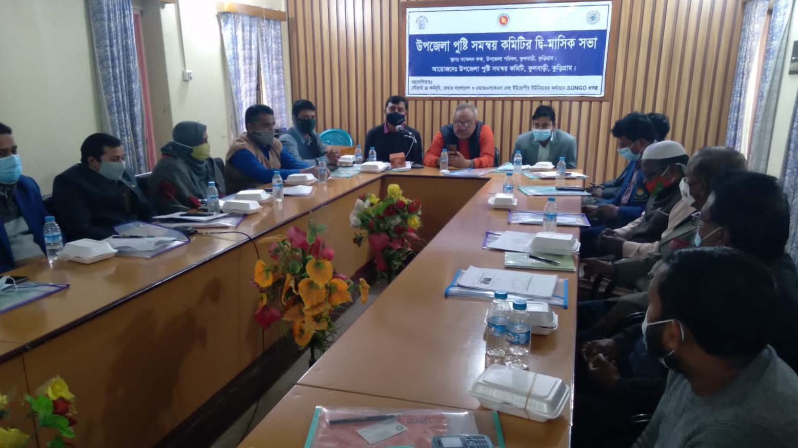 এতে উপজেলা নির্বাহী কর্মকর্তা সুমন দাশের সভাপতিত্বে পুষ্টি কমিটির উপদেষ্টা ও উপজেলা চেয়ারম্যান গোলাম রব্বানী সরকার শুভেচ্ছা বক্তব্য, কমিটির সদস্য সচিব এবং উপজেলা স্বাস্থ্য ও পঃপঃ কর্মকর্তা সুমন কান্তি সাহা স্বাগত বক্তব্য ও অন্যান্যদের মধ্যে সাইফুর রহমান সরকারি কলেজের অধ্যক্ষ রফিকুল ইসলাম, উপজেলা স্বাস্থ্য কর্মকর্তা সুমন কান্তি সাহা, ইউপি চেয়ারম্যান মোহাম্মদ আলী শেখ, SONGO প্রকল্পের কনসালটেন্ট নাজমুল হক, সৌহার্দ্য-৩ এর উপজেলা সমন্বয়কারী ফজলুল হক প্রমূখ বক্তব্য রাখেন।