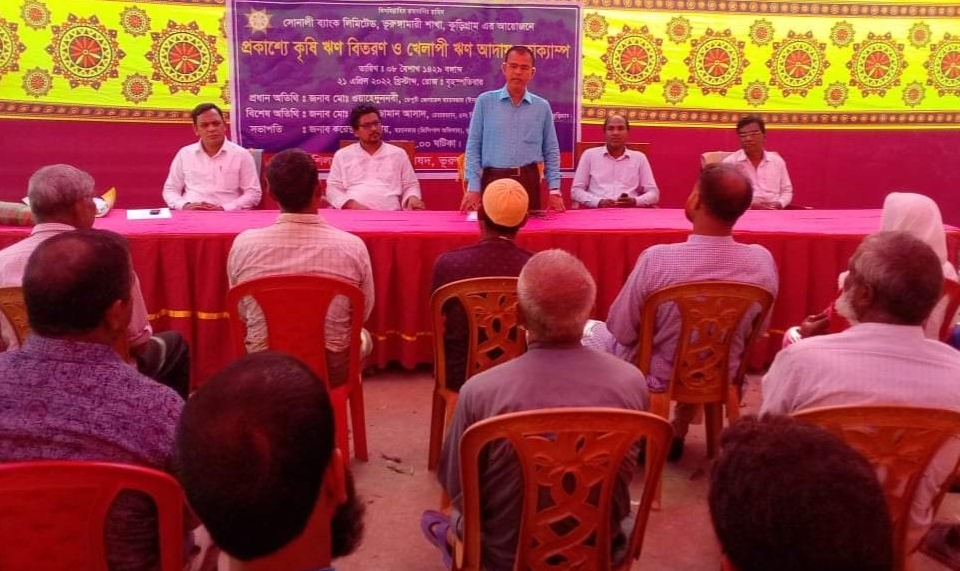 ভূরুঙ্গামারী (কুড়িগ্রাম) প্রতিনিধিঃ কৃষকদের দোরগোড়ায় কৃষি ঋণ সেবা পৌঁছে দিতে সোনালী ব্যাংক লিমিটেডের ভূরুঙ্গামারী শাখা প্রকাশ্যে কৃষি ঋণ বিতরণ ও খেলাপি ঋণ আদায় মহাক্যাম্পের আয়োজন করে।