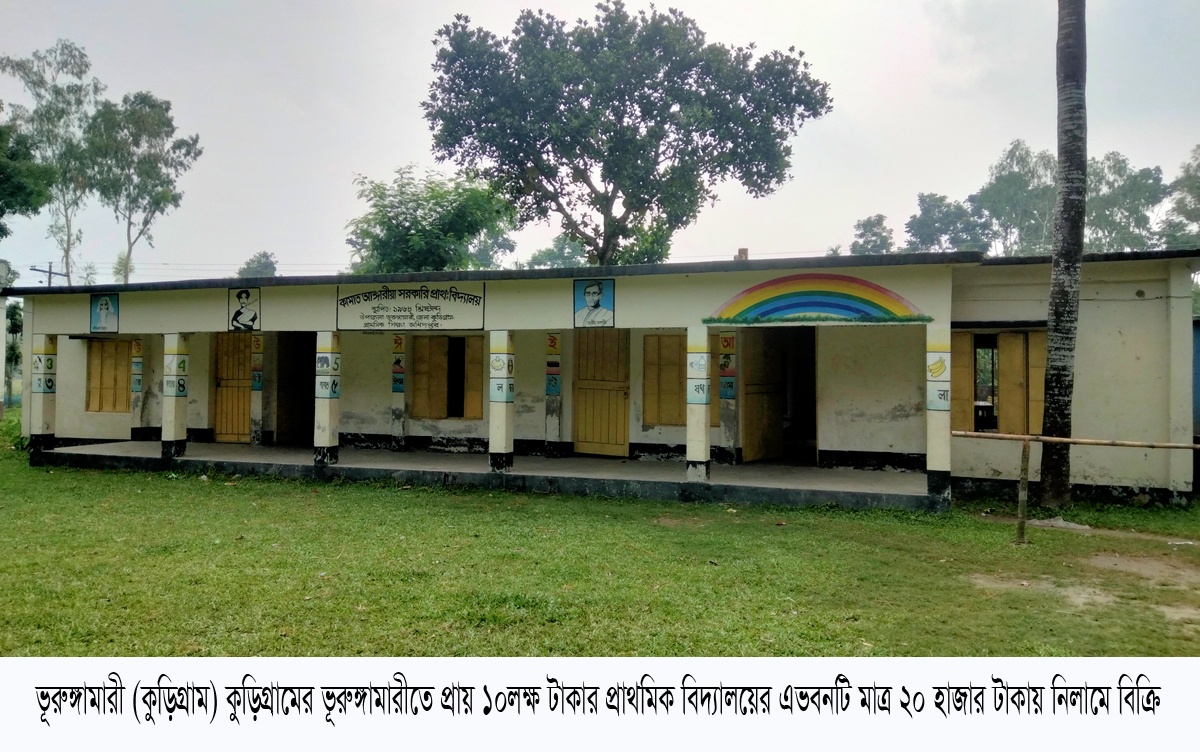 কুড়িগ্রামের ভূরুঙ্গামারীতে প্রায় ১০লক্ষ টাকা ব্যয়ে নির্মিত প্রাথমিক বিদ্যালয়ের একটি ভবন মাত্র ২০ হাজার টাকায় নিলামে বিক্রি করা হয়েছে। এ রকম একটি ভবন মাত্র ২০ হাজার টাকায় নিলাম দেয়ায় এলাকায় চাঞ্চেল্যের সৃষ্টি হয়েছে।