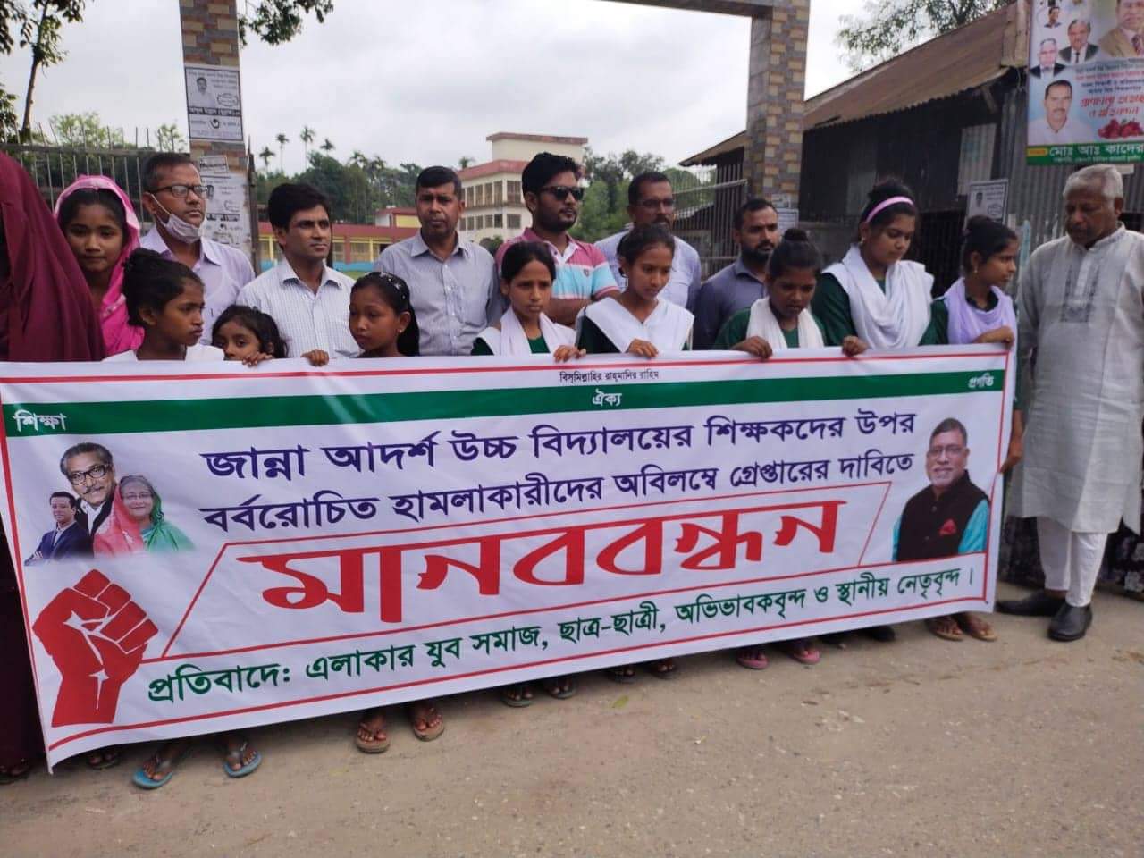 শনিবার সকালে উপজেলায় জান্না বাজারে এ মানবন্ধন অনুষ্ঠিত হয়।