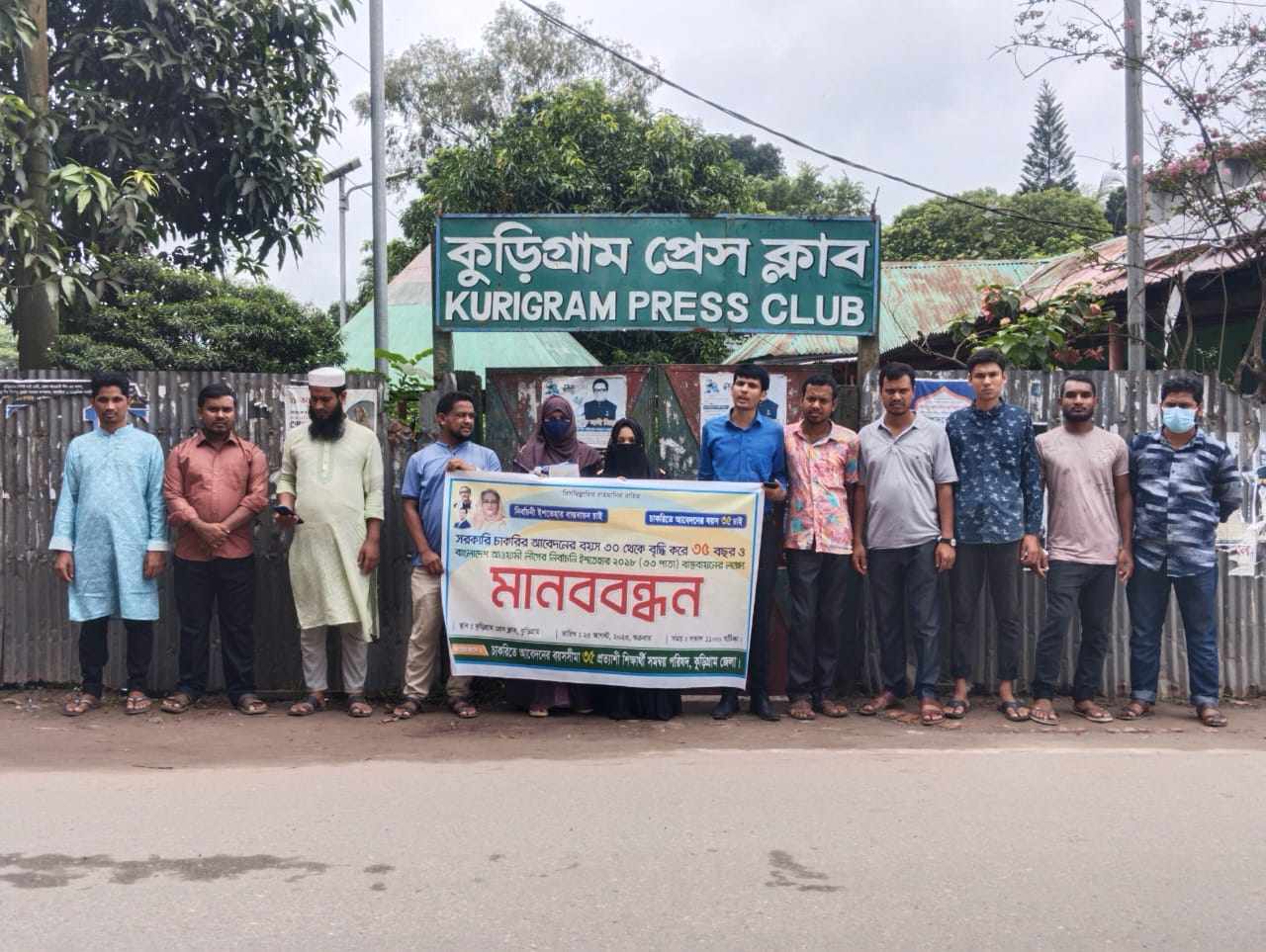 কুড়িগ্রাম জেলায় চাকুরিতে আবেদনের বয়স ৩৫ এর দাবিতে মানববন্ধন করেছে চাকরি তে আবেদন এর বয়স ৩৫ প্রত্যাশী শিক্ষার্থী সমন্বয় পরিষদ। কুড়িগ্রাম প্রেস ক্লাবের সামনে অনুষ্ঠিত মানববন্ধনে রংপুর বিভাগের সমন্বয়ক মোঃ তাজুল ইসলাম বলেন ১৯৯১ সালে সর্বশেষ চাকরিতে আবেদনের ২৭ থেকে ৩০ করা যখন গড়আয়ু ছিল ৫৭ বছর এখন আমাদের গড় আয়ু ৭৩ বছর, যেহেতু গড় আয়ু, মাথাপিছু আয় জীবন যাএার মান বৃদ্ধি পেয়েছে তাই চাকরিতে আবেদনের বয়স ৩৫ সময়ের দাবি।