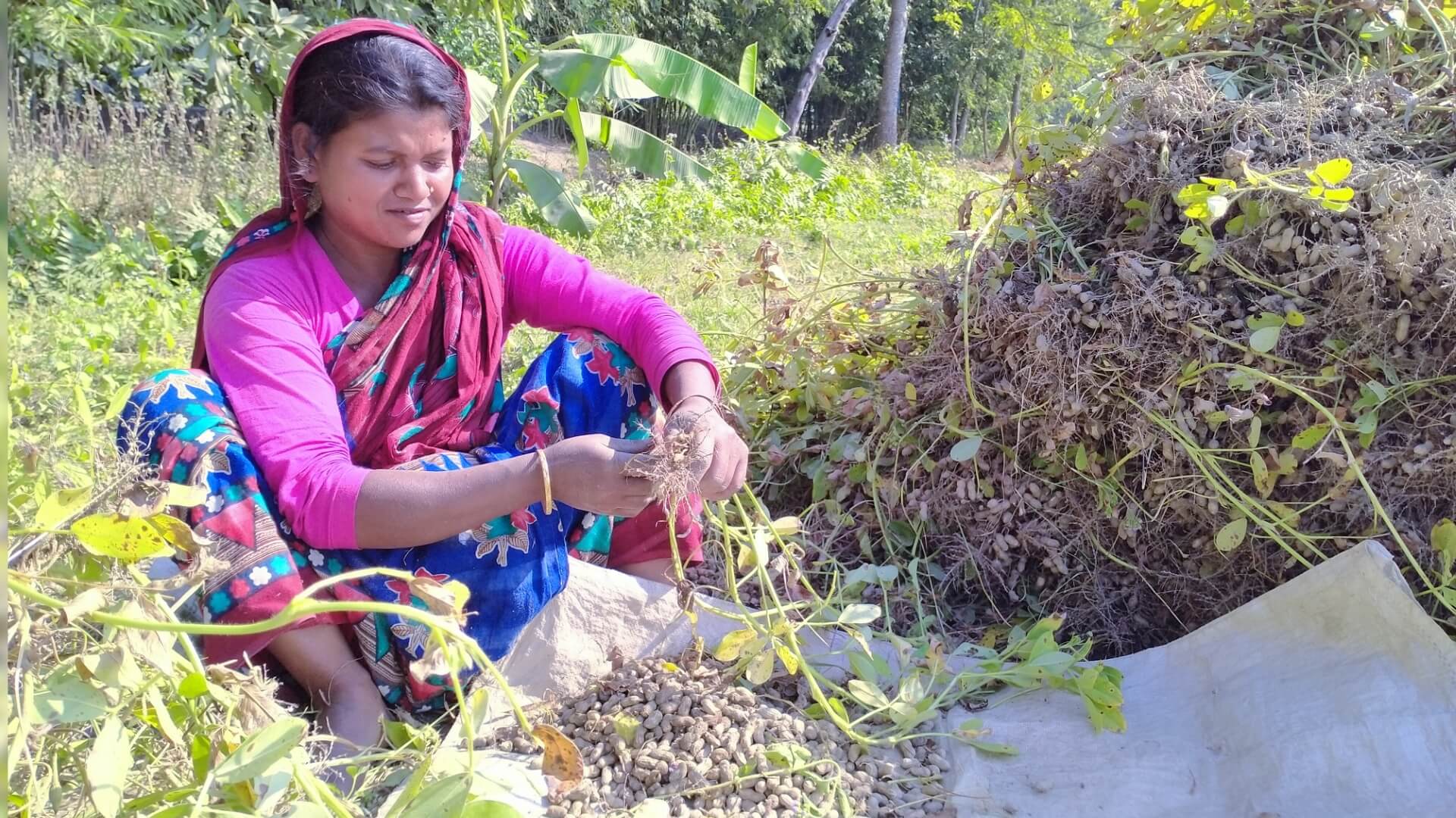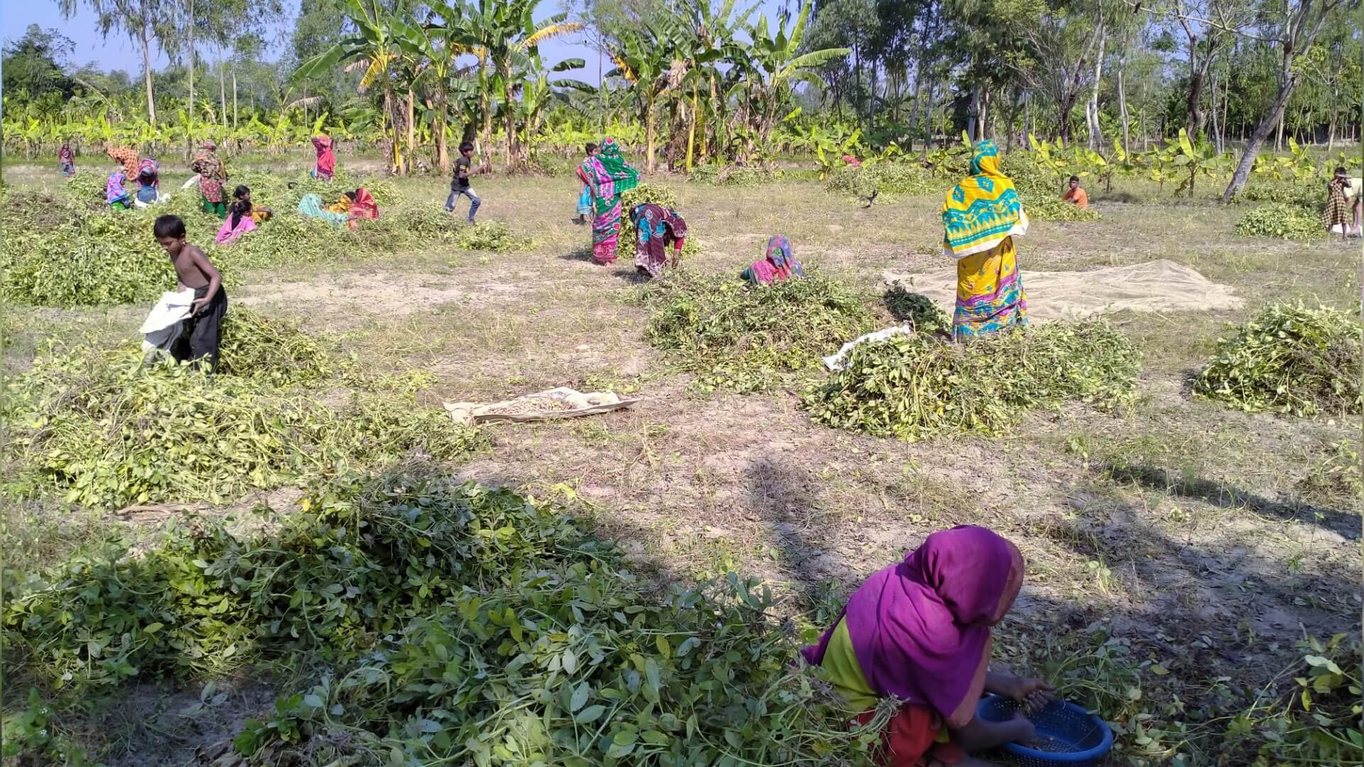 উপজেলার নাওডাঙ্গা ইউনিয়নের প্রত্যন্ত চর গোরকমন্ডল এলাকায় গিয়ে দেখা যায়, মমতাজ আলীর জমি থেকে বাদাম তুলছেন ছফুরা খাতুন, ছকিনা খাতুন, সুকুরজান, আকলিমা খাতুন সহ ২০/২৫ জন নারী। কয়েকজন রাস্তার ধারে বসে গাছ থেকে বাদাম ছড়াচ্ছেন। তারা জানালেন, প্রতি কেজি বাদাম ছড়ানোর জন্য পাবেন ৪ টাকা। এছাড়াও বাদাম গাছের ডালপালা নিবেন গোখাদ্য ও জ্বালানি হিসেবে ব্যবহার করার জন্য।