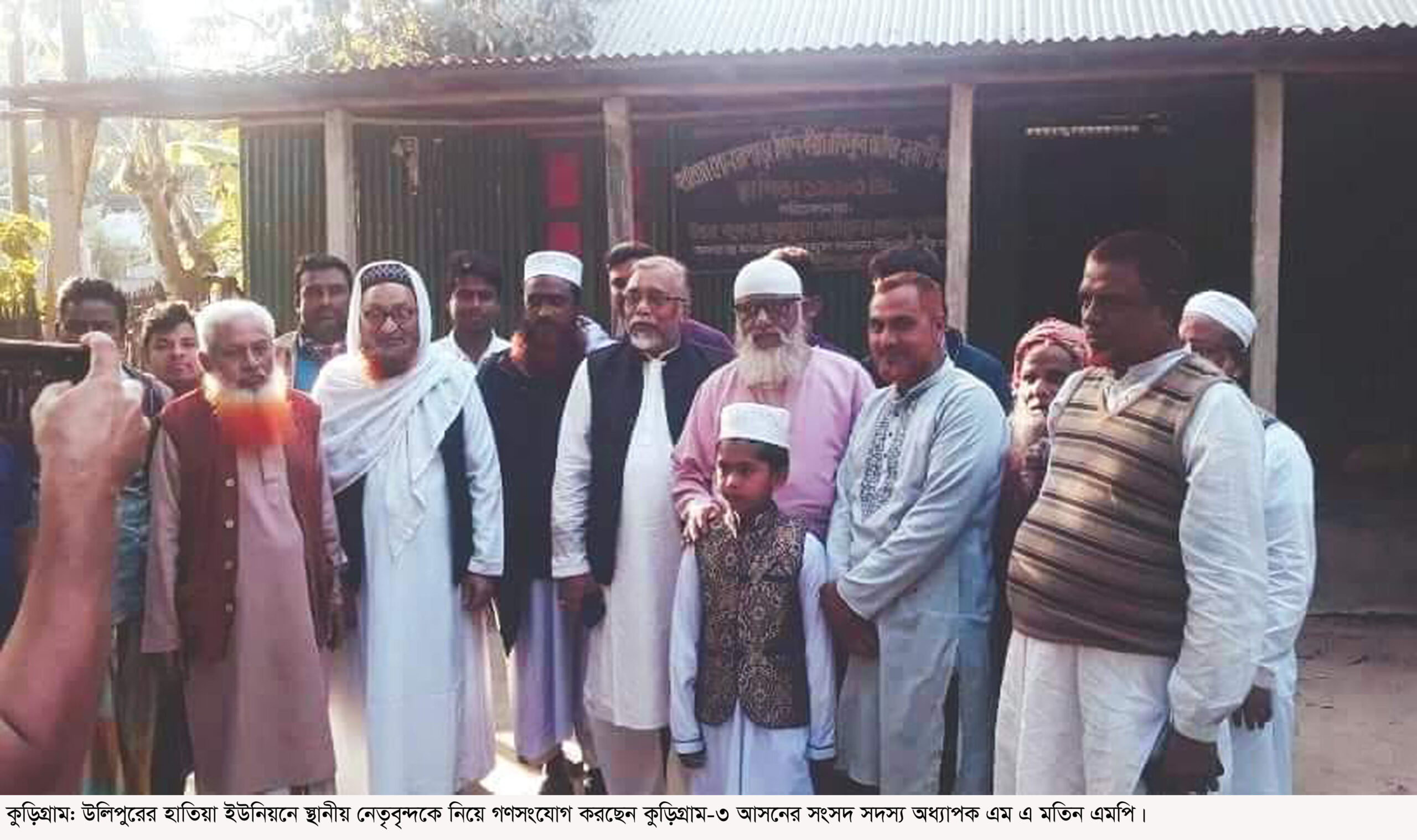 অভিযোগে জানা যায়, কুড়িগ্রাম-৩ আসনের সংসদ সদস্য অধ্যাপক এম এ মতিন এমপি গত ৬ এবং ১৩ ডিসেম্বর হাতিয়া ইউনিয়নে বিভিন্ন অনুষ্ঠানের ব্যানারে নৌকা মার্কার প্রার্থীর পক্ষে জনসংযোগ করেন। যে কোন মূল্যে দলীয় প্রার্থীকে বিজয়ের ঘোষণায় নেতাকর্মীরা উষ্কে ওঠে। এছাড়াও এই ইউনিয়নে প্রতিপক্ষকে ফাঁসাতে গত ২ ডিসেম্বর শ্যামপুরের কাচারিয়ার ঘাটে নৌকা প্রতীক পোড়ানোর ঘটনাস্থল পরিদর্শন করেন এমপি। ১৩ ডিসেম্বর হাতিয়া ভবেশ এলাকায় হাতিয়া গণহত্যার অন্যতম হোতা মৃত: রাজাকার বাবর উদ্দিনের পূত্র মাওলানা মোবাশ্বের রাশেদীনসহ সাবেক স্বতন্ত্র প্রার্থী আজিজার মাওলানাকে নিয়ে ওই ওয়ার্ডে প্রচারণা চালান। এছাড়াও তিনি সন্ধ্যায় সালাম পীর সাহেবের বাৎসরিক ওয়াজ মাহফিলে অংশ নিয়ে দলীয় প্রার্থীর পক্ষে ভোট চান বলে অভিযোগ উঠেছে।